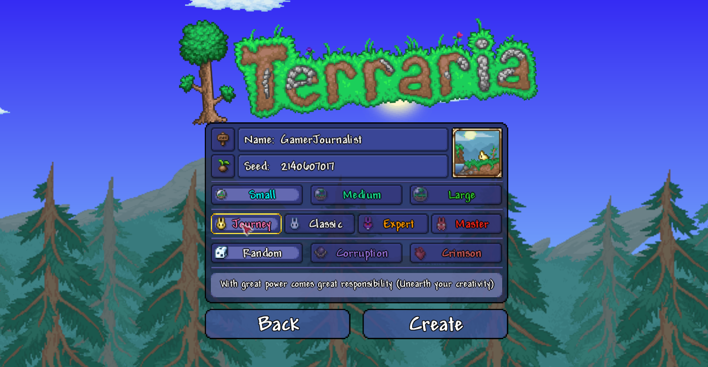 Quiconque possède une copie de Terraria recevra la mise à jour 1.4 Journey’s End et pourra profiter de ces deux nouveaux modes. Ils peuvent être sélectionnés lors de la création d’un nouveau monde ou personnage. Si vous êtes nouveau sur Terraria, il peut être judicieux de vivre l’expérience originale de la vanille avant de plonger en mode Journey et en mode Master.