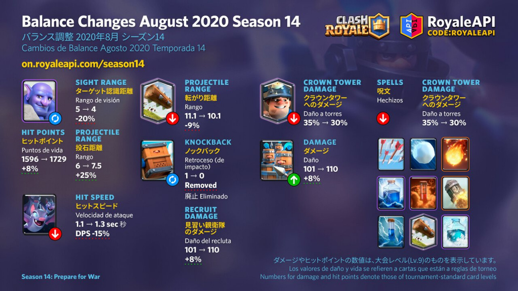 Alors que la saison 14 débute officiellement le 3 août vers 11h00, heure britannique, le patch Clash Royale, apportant plusieurs changements d’équilibre au jeu, sortira un peu plus tard.