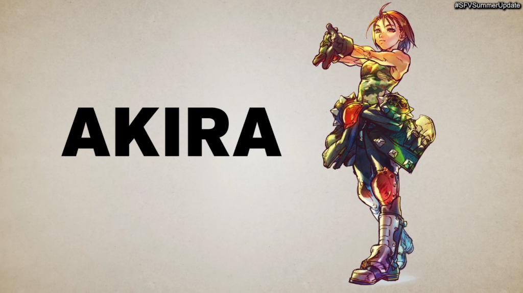 « Originaire d’écoles rivales, Akira fait ses débuts dans Street Fighter à SFV. Nous prévoyons d’apporter certains de ses styles et gadgets des écoles rivales, tout en restant dans SFV. Akira et sa nouvelle scène sont prévues pour l’été 2021! «