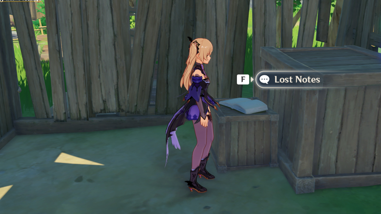 Après avoir obtenu la quête du fantôme, marchez à l’ouest de quelques mètres et entrez dans la maison en bois. À l’intérieur, vous verrez un livre ouvert posé sur la boîte en bois. Interagissez avec le notes perdues, car c’est le premier objectif de la quête.