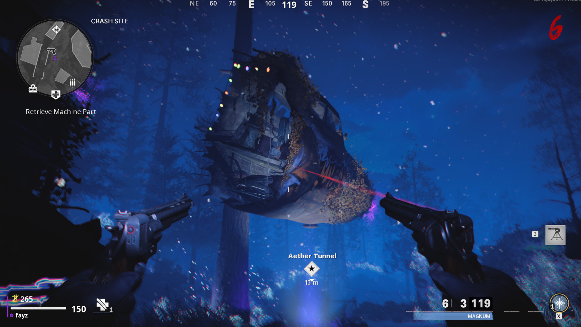 Obtenez le D.I.E. Machine, et dirigez-vous vers la région de l’étang. Entrez dans l’éther sombre depuis l’anomalie de l’étang. Dirigez-vous vers le site du crash (avec l’avion abattu) et vous devriez maintenant remarquer qu’une partie de l’avion flotte dans les airs.