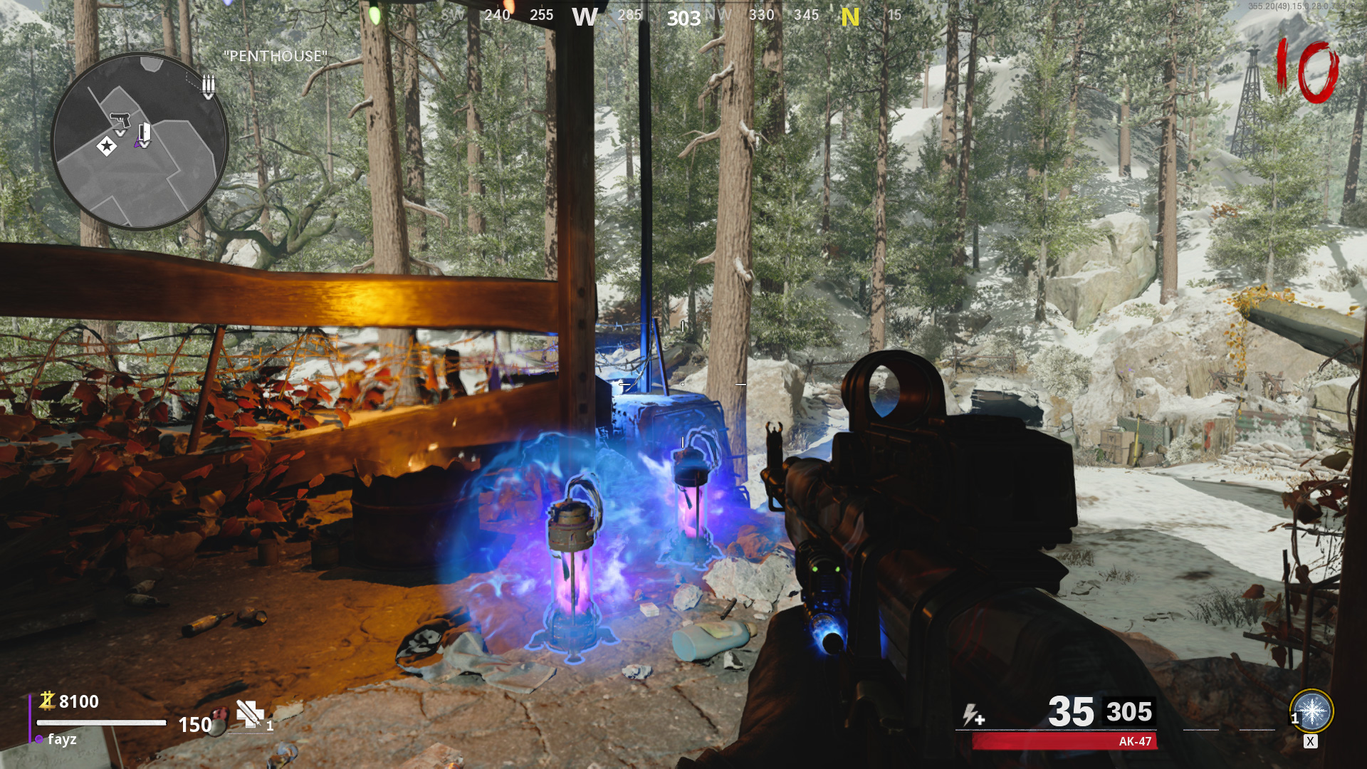 Comme nous l’avons mentionné, vous aurez besoin d’une lunette à longue portée pour celui-ci car quelques satellites sont éloignés. Vous devrez également ajouter le Fil mort modificateur de munitions à votre arme, qui peut être fait à la machine Pack-A-Punch pour 2000 points Zombie. Lorsque vous tirez sur chaque satellite, il tourne dans une direction. Votre objectif est de faire en sorte que chacun des quatre satellites soit orienté vers Nacht der Untoten. Vous saurez qu’un satellite fait face à la bonne direction lorsque vous voyez une étincelle bleue.