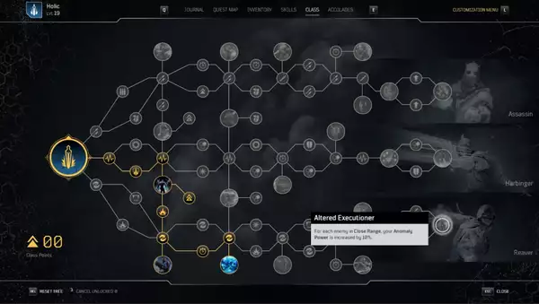 En ce qui concerne ce sur quoi vous devriez dépenser vos points de classe pour la version Trickster, nous vous recommandons d’opter pour la version Reaver. Le dernier nœud de classe de cet arbre est Altered Executioner, qui améliore vos dégâts d’anomalie à courte portée de 10%.