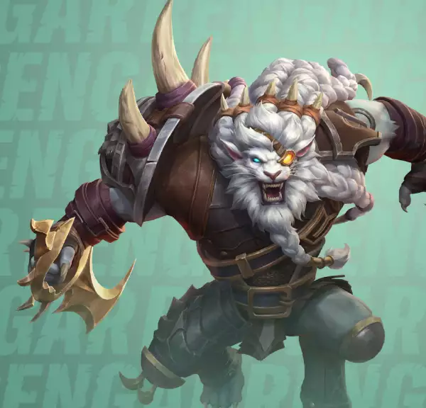- Battle Roar: Rengar déclenche un rugissement de bataille, endommageant les ennemis proches et soignant certains des dégâts qu’il a subis récemment. Avec Férocité, cette compétence supprime également les effets de contrôle de foule sur lui.