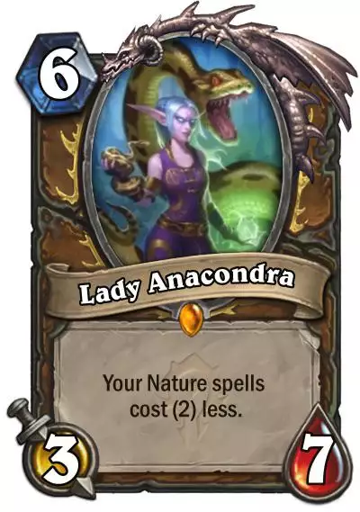 Une chose qui nous déçoit un peu, c’est à quel point l’effet de cette carte est ennuyeux. C’est l’une des quatre seules cartes légendaires de l’extension, et nous aimerions voir des effets plus uniques et jamais vus auparavant, pas un autre effet de réduction des coûts pour les druides. Où est votre créativité Blizzard ?