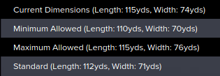 Ensuite, vous vous demandez quelle est la meilleure taille de pas ? Les options sont généralement, selon les règlements de la ligue et les possibilités de changement dans votre stade, que vous souhaitiez agrandir ou réduire l’un, ou les deux, de la largeur et de la longueur du terrain.