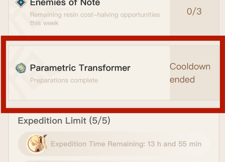 Tout d’abord, « Transformateur paramétrique » a été ajouté aux notes en temps réel pour vous permettre de suivre le temps de recharge des préparations. Cependant, les fonctionnalités de ce module ne sont disponibles que dans l’application HoYoLab.