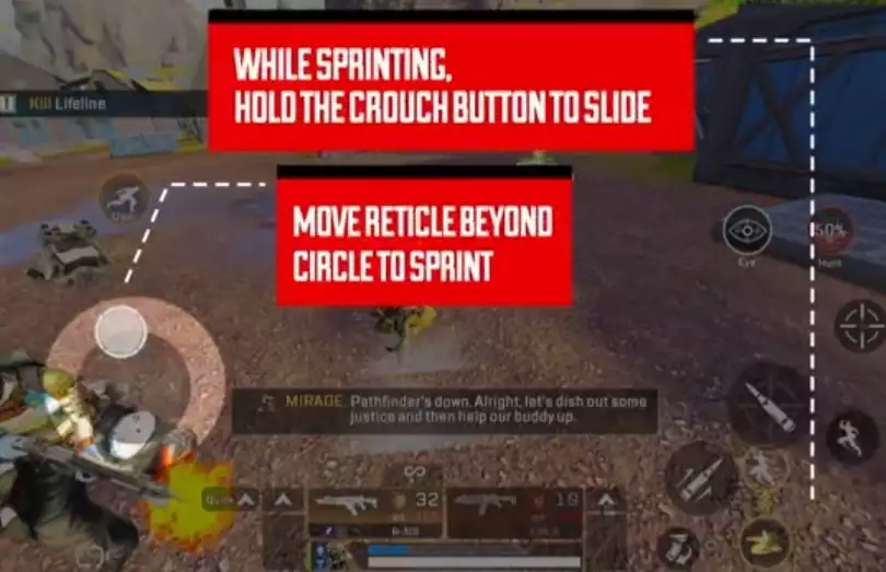 L’image ci-dessus montre comment vous pouvez glisser dans Apex Legends Mobile. Découvrez ci-dessous les étapes à suivre :