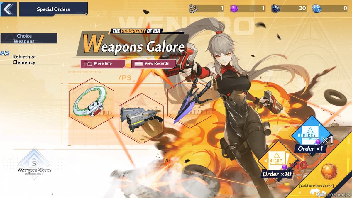Tower of Fantasy a différentes bannières de cache pour différents noyaux. Cependant, au moment de la rédaction de cet article, l’image ci-dessus représente la bannière Black Nucleus Cache. Vous pouvez débloquer des armes et des personnages en utilisant la devise.