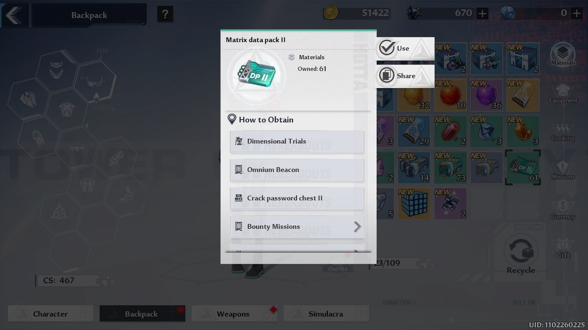 - Essais dimensionnels – Les défis se déroulent généralement dans des donjons. Vous pouvez utiliser Vitality pour y jouer et obtenir des packs de données Matrix.