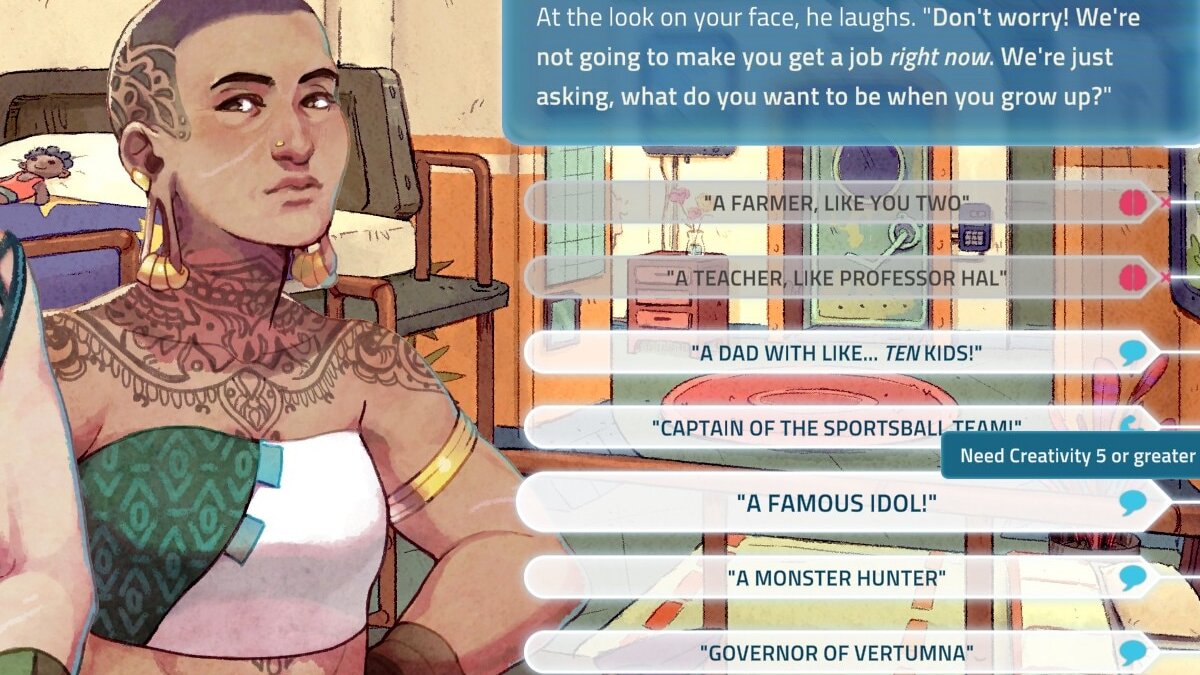 I Was a Teenage Exocolonist nécessite plusieurs parties pour en faire l’expérience dans son intégralité afin de tout débloquer et de comprendre son histoire. Cela vaut également pour la façon d’expérimenter chaque travail de colonie à prendre en compte dans son achèvement complet. Ceux que vous priorisez dépendent entièrement de vous afin de façonner l’avenir de votre personnage de joueur, comme le décrit finalement son épilogue qui aboutit à 1 des 29 fins.