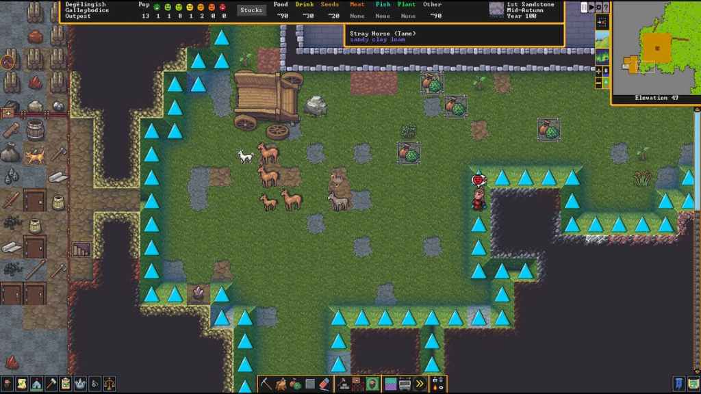 Il n’y a vraiment que deux façons de gérer la crise de vos animaux agités : installez votre forteresse ailleurs ou passez en mode défense complète. Dans Dwarf Fortress, l’environnement de votre choix est extrêmement important. Certains sont beaucoup plus dangereux que d’autres et peuvent avoir une concentration plus élevée d’animaux fous. Essayez de choisir un environnement « calme » la prochaine fois et observez que tous vos soucis d’animaux agités disparaissent pour la plupart.